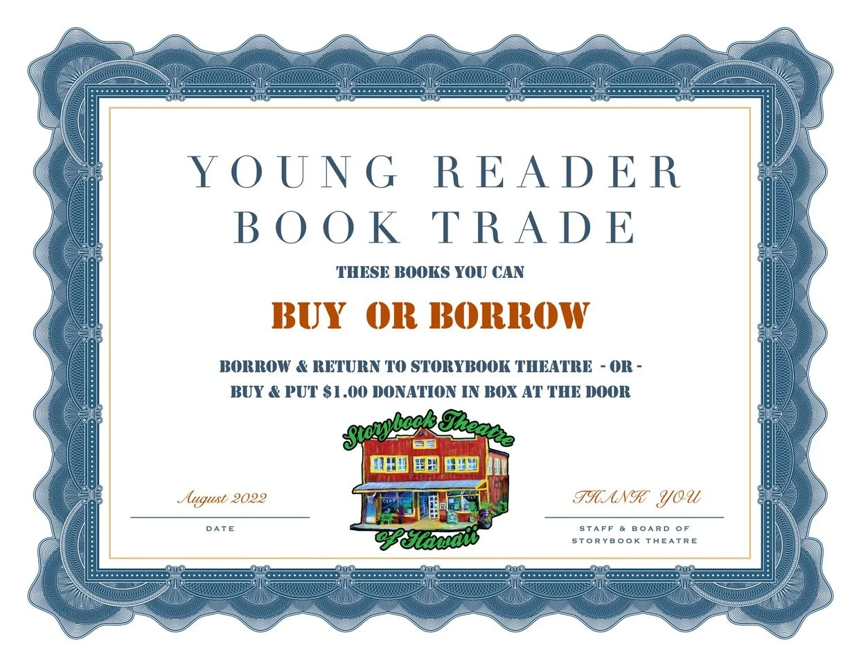 Come on by and check out our Young Readers Book Trade Inside Storybook Theatre Tuesday's, Wednesday's & Friday's. New adventures in every book.